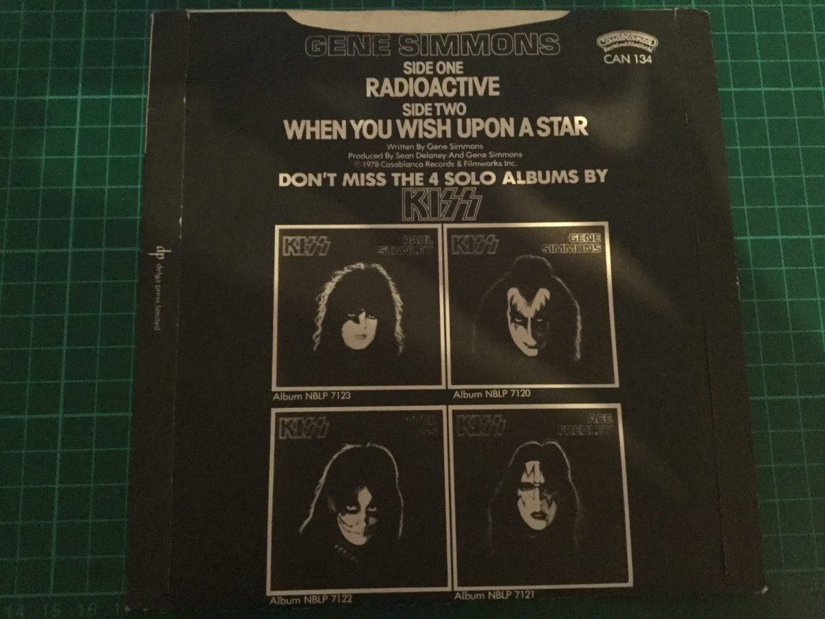 The picture sleeve itself comes in two versions – a large angular cutout to assist with the removal of the record and a smaller, rounder and deeper cutout. This variation is evident in Paul Stanley’s single as well. As earlier Kiss releases such as Hard Luck Woman used the same style of cutout, it’s entirely feasible that the larger cut-out was released first. My memory is not that great to remember back 42 years ago to confirm which version I had when I bought it as soon as came out and I don’t have my original copy now either.